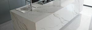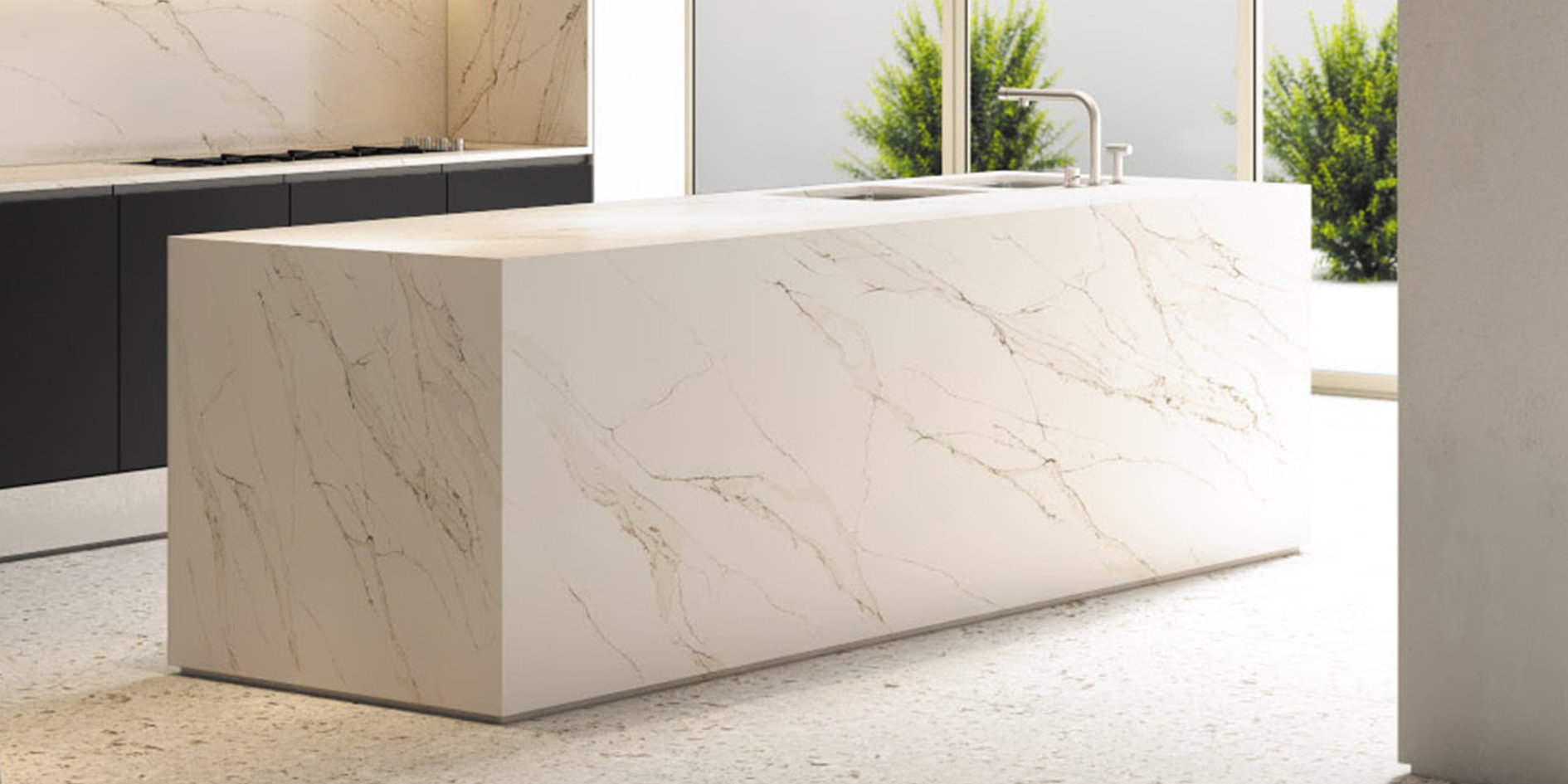 Unique Calacatta Gold by Compac has a white background with a predominate copper vein that ruptures across the stone. The golden pattern is stunning and trendy and therefore works with a décor scheme that lets the worktop take centre stage. It is part of Compac’s UNIQUE range of best-in-class worktop designs.
