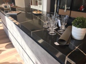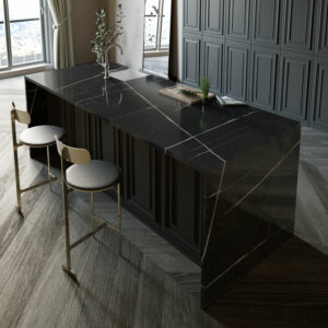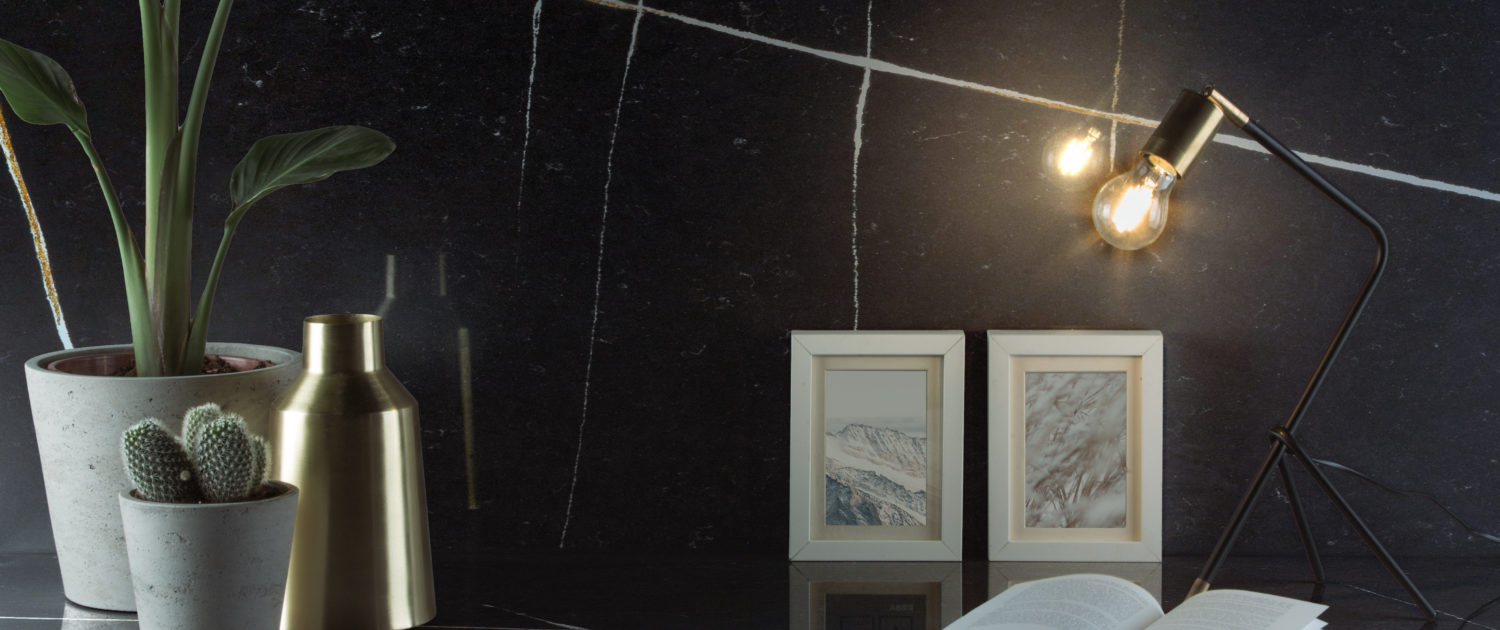 Eternal Noir by Silestone quartz is the result of a sensitive design inspire in the asimetric and elegancy of the natural Stone. Their stright lines and sober design inspired dark but warm spaces, elegants and with oun light.